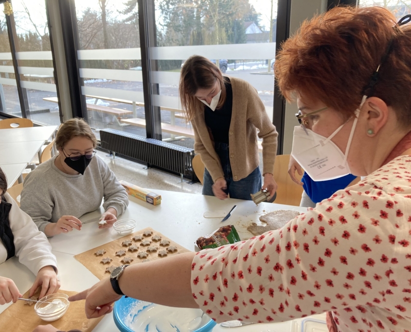 Aus diesem Grunde ging ich nicht wirklich motiviert zum Kekse-Backen meiner Klasse hin. Als ich dann meine Freunde sah, hob sich meine Stimmung ein wenig. Irgendwann reichte uns Frau Ruppe den Teig und meine Motivation sank erneut. Als wir begannen, den Teil zu rollen, die Kekse zu formen und aufzulegen, vergaß ich irgendwie, dass mir das Kekse-Backen gar keinen Spaß macht. Im Gegenteil, es machte mir vielleicht sogar ein wenig Spaß. Nachdem die Kekse im Rohr waren, nahmen manche Jungs Puderzucker und bewarfen uns, wir warfen daraufhin zurück und das machte tatsächlich Spaß. Schlussendlich spielten wir Spiele und aßen Kekse. Am Ende des Vormittags wurde ich eines Besseren belehrt – Kekse backen KANN doch Spaß machen.