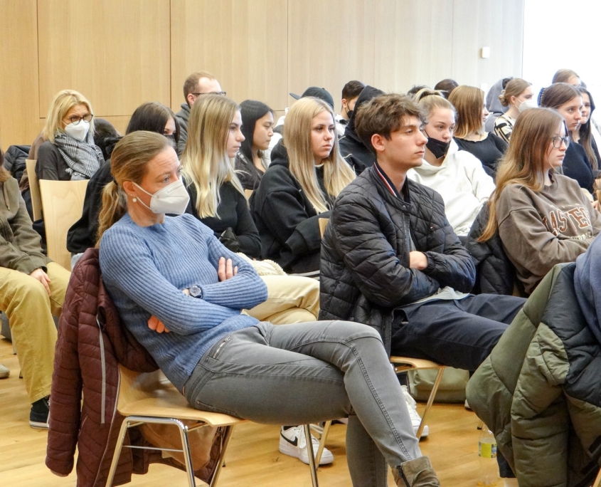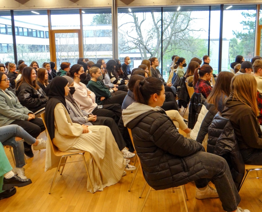 Gleich in mehrfacher Hinsicht bot Freitag, der 8.4., neue Erfahrungen für über 200 Schülerinnen und Schüler aus unserem Haus: Zum einen waren wir erstmals Gast im neuen Feuerwehrhaus und durften dank unserer liebenswürdigen und sehr zuvorkommenden Gastgeber, der Feuerwehr Lustenau, einen ungestörten Vormittag in der holzgetäfelten, warmen Atmosphäre des neuen Saales im Obergeschoss verbringen – mit Fernblick auf unser eigenes Schulhaus als spezielles Schmankerl.