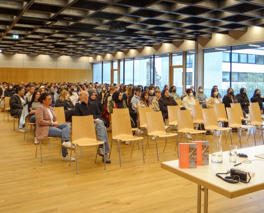 Dass wir eingeladen wurden, eine Station der Vorarlberger Lesereise der beiden Wiener Autorinnen Bolyos und Frank zu werden, ist wiederum einer Anfrage von Alexandra Jank von der Bibliothek Lustenau zu verdanken. Damals, im Winter, noch tief von den Corona-Restriktionen betroffen, war es für uns als Schule noch nicht einmal denkbar, externe Personen in unser Schulhaus einladen zu dürfen, geschweige denn, größere Veranstaltungen zu planen. Welche Freude für uns alle also, ein derartig großes Event wieder auf die Beine stellen zu können. (NN