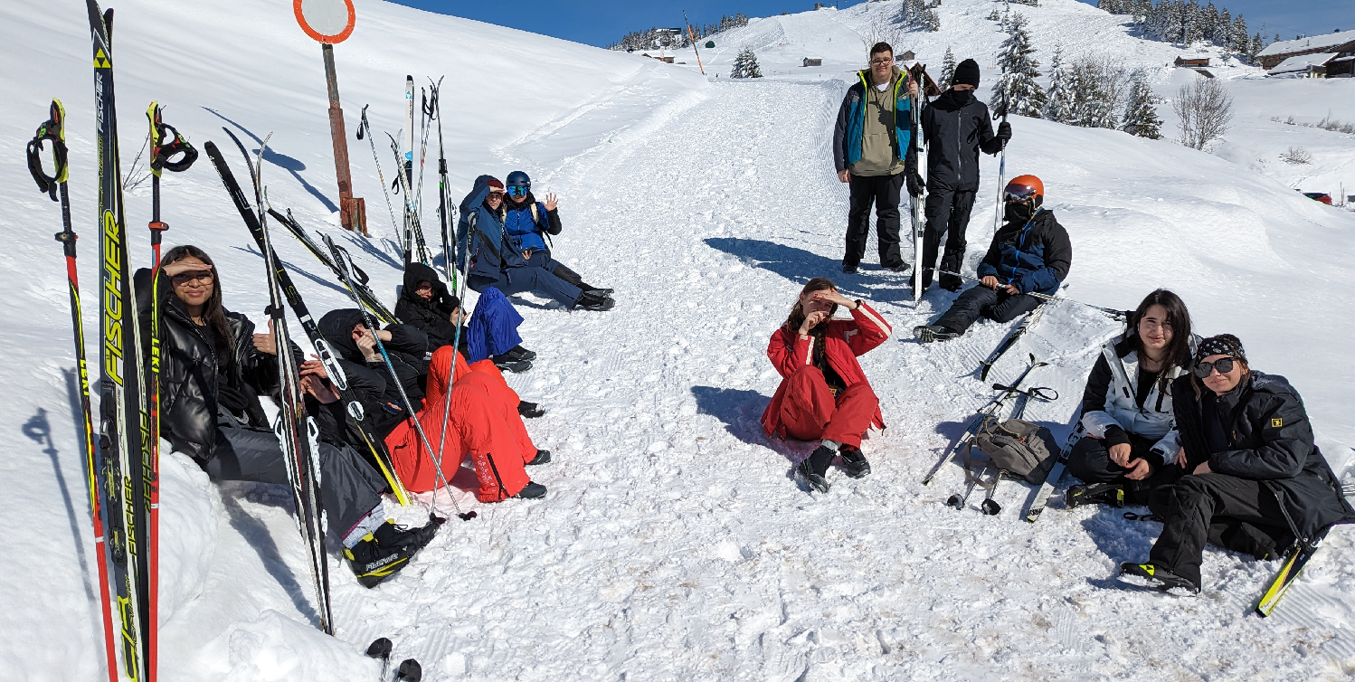 Once on the slopes, it took nearly 1,5 hours for the students to make sure their surroundings were secure and that they would not get overrun by snow groomers. After fighting themselves through the fog that was so thick you could not even see the ground, the adventurers returned to the hut (UGA Alpe) to enjoy some fast food. Strangely, one group didn’t attend the meal in time. One of their fellow adventurers had fallen into a trap of doom and had to be rescued by the brave heroes guarding the environment of the snow empire. Said person was not seen again until the fellowship reunited in the following month. Another person who overestimated his/her ability to ski was not capable of skiing down the slope and ended up walking down. The accompanying teacher definitely had to put a lot of energy and motivation into keeping the group together and getting everyone back home safely.
