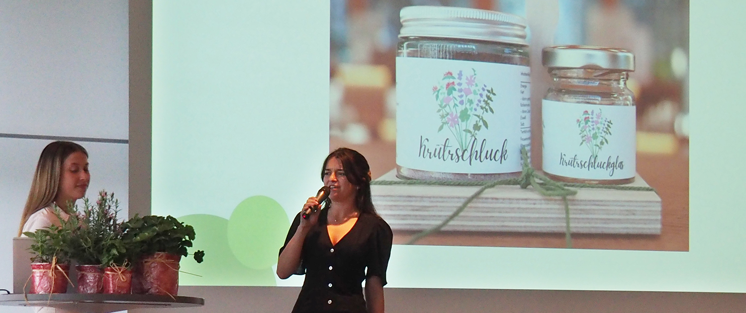 In der heimischen Küche hatte das Experiment „Krütrschluck“ für die beiden jungen Frauen begonnen; die Mixtur aus Molke und pulverisierten Kräutern wollte geschmacklich abgestimmt werden – denn nicht nur die gesundheitliche Wirkung von Goldmelisse, Zitronenmelisse, Frauenmantel, Käsepappel & Co. sei ausschlaggebend. Zudem, so Greussing und Feurstein, hätten sie auch den Anspruch, dass ihr „Krütrschluck“ den Konsumentinnen und Konsumenten schmecke und in einer Art und Weise präsentiert und verpackt sei, die einfache Handhabung und lange Haltbarkeit garantiere. Damit und mit ihrer gelungenen Kostenrechnung und Marketingstrategie konnte das Duo aus dem Bregenzerwald nicht nur seinen Projektpartner Metzler naturhautnah, sondern auch die Jury bei den Awards überzeugen.