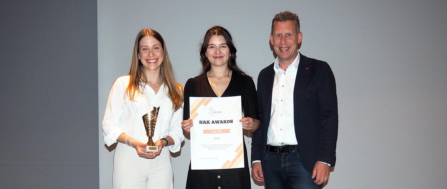 Mit ihrem Diplomarbeitsthema konnten Elena Feurstein & Mona Greussing von den Bezauer Wirtschaftsschulen die 5-köpfige Jury überzeugen und erhielten dafür bei den Verleihungen am 15.5.2024 den gefragten HAK Award für die vorarlbergweit beste Handelsakademiker-Diplomarbeit.